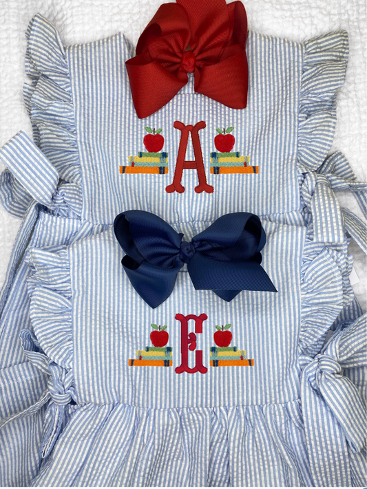 Girls Monogram Apple Outline Seersucker Back to School Dress