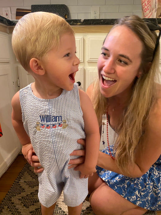 Boys Seersucker Shortalls/ Jon Jons